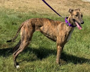 Luna Lou –You met this little lady when we posted the Facebook photo album of the Top Derby Field Trial Races in September. She is a female, field trial racing greyhound. Born Oct. 1, 2021. Age 3. About 53 pounds.