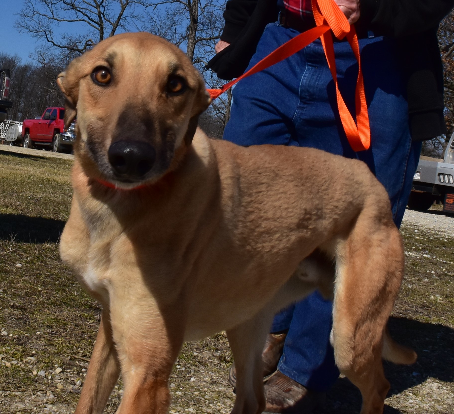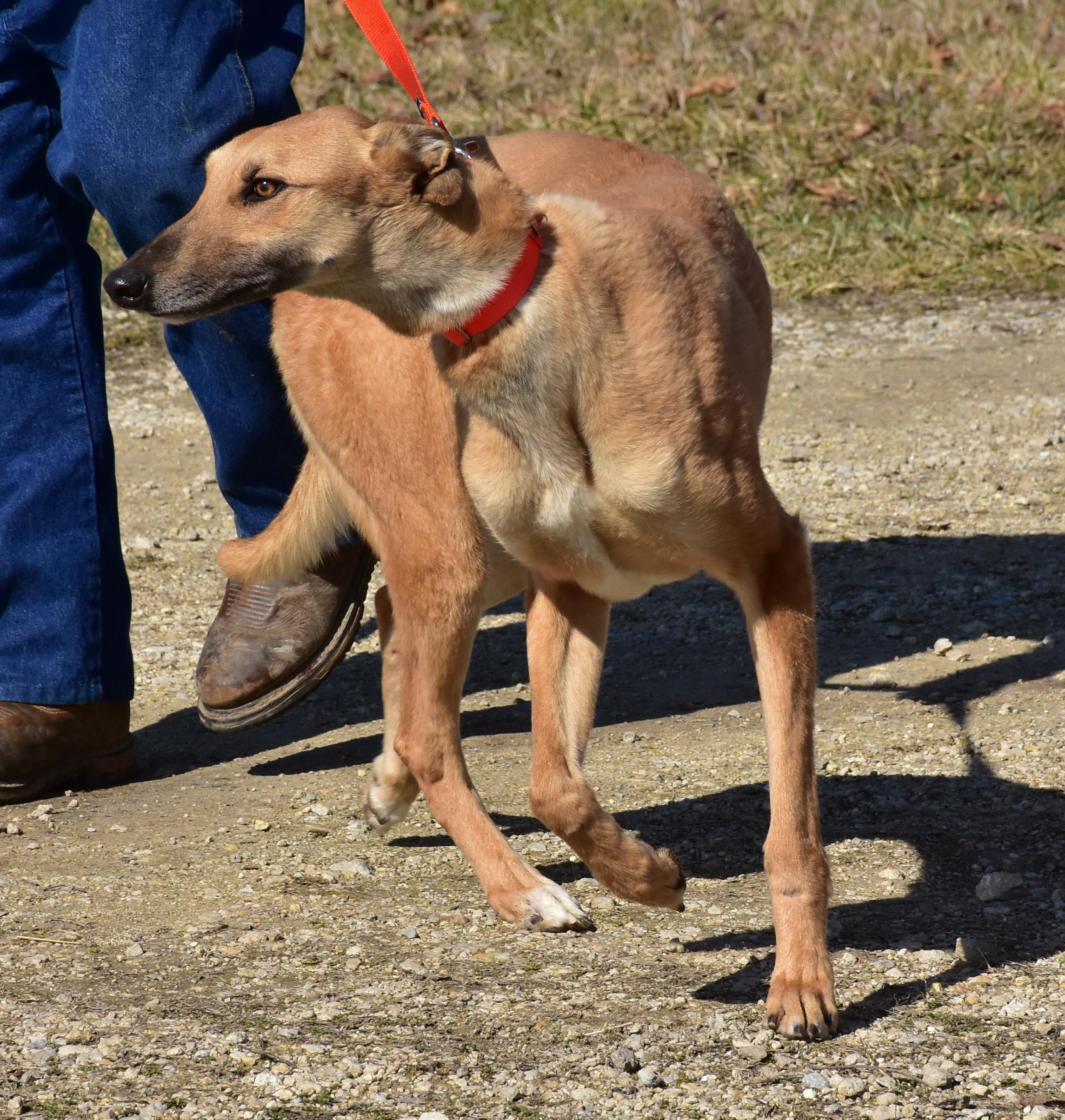 Kidd (Country Kid): This is a 1½-year-old red fawn male, a field trial greyhound racer. (Greyhound lurcher.)
